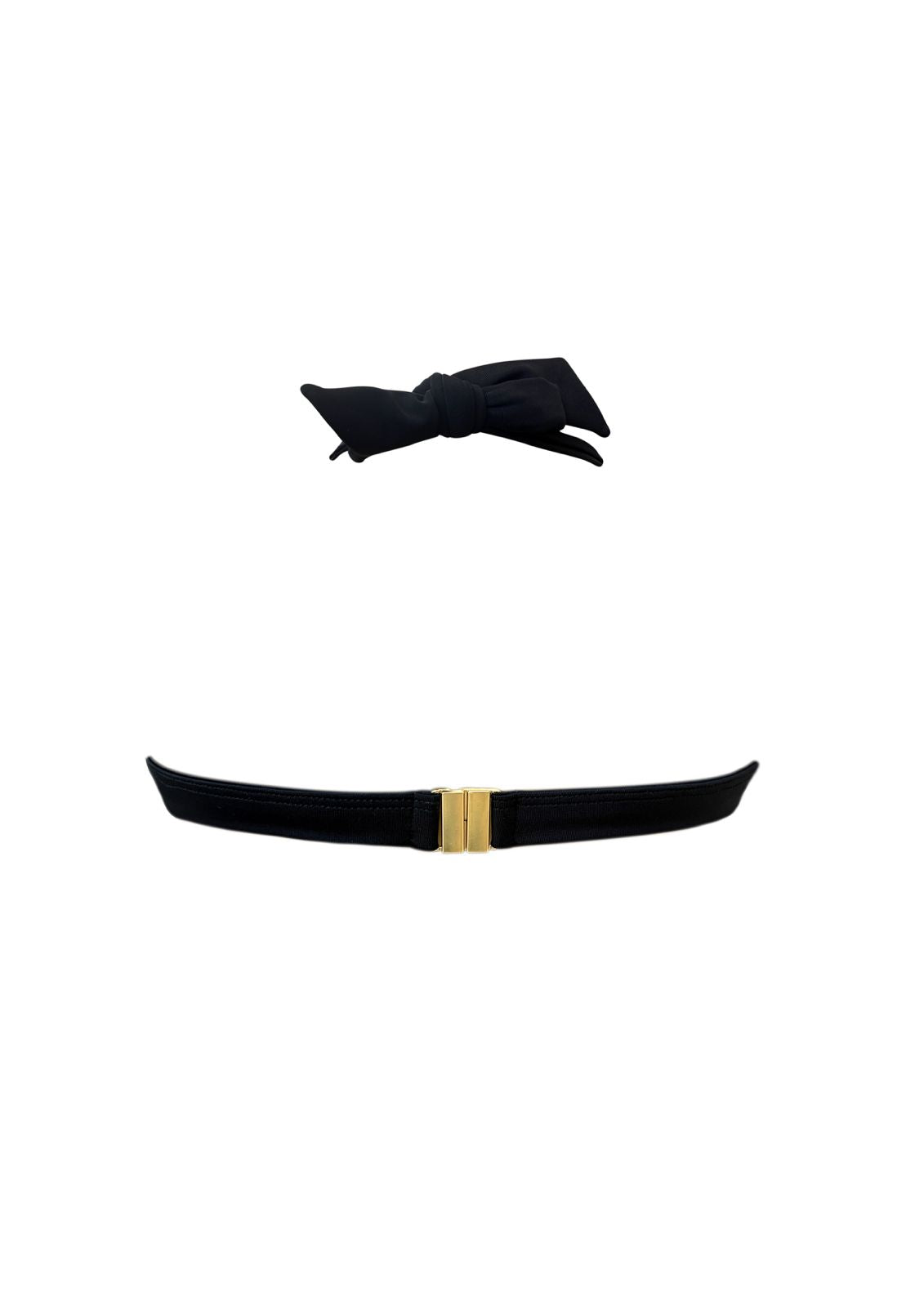 Featuring removable padding and an extra layer of fabric to discreetly cover the hem, this bikini also includes a chic gold buckle at the back for an added touch of glamour.