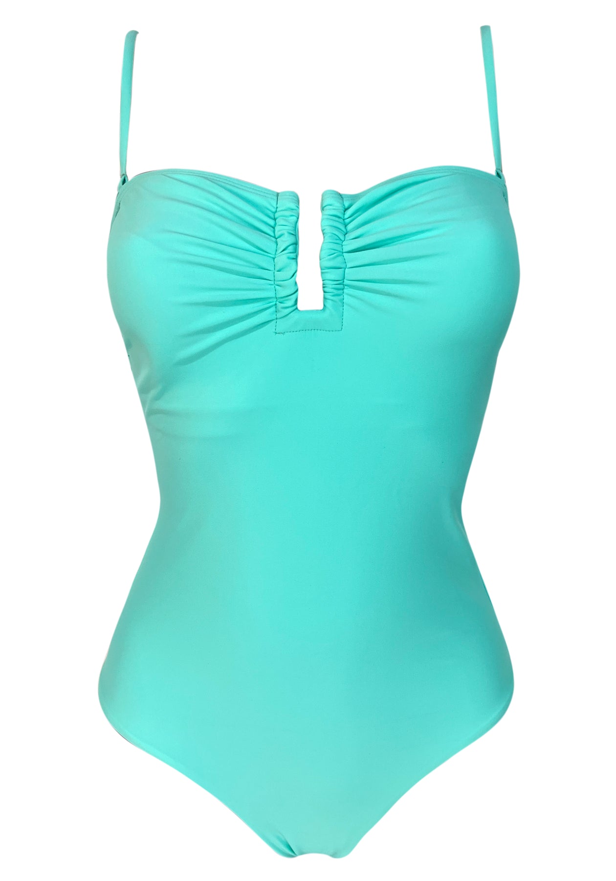 Dive into sophistication with our Amalfi Turquoise Bandeau Swimsuit, a stunning addition to your swimwear wardrobe. Designed in our signature Amalfi turquoise, this piece features an anatomically shaped U accessory that enhances your bust and accommodates deeper cups (up to D or DD) for a flattering fit.